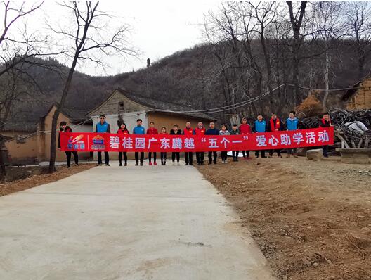 2018年12月1日,廣東騰越黨委、工會及陜西公司員工代表前往碧桂園集團定點扶貧 “9省14縣”中的陜西省銅川市耀州區(qū)廟灣鎮(zhèn)賀家莊開展“五個一”愛心助學(xué)活動,將廣東騰越7000多名員工的“濃濃愛心”,親手交至貧困學(xué)子手中。