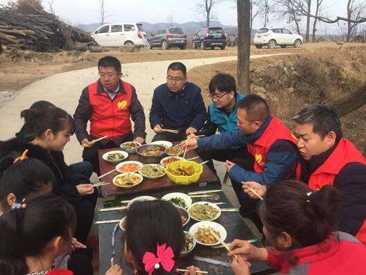 陜西公司總工程師秦仁杰以及志愿者們與孩子們在飯桌上熱情交流