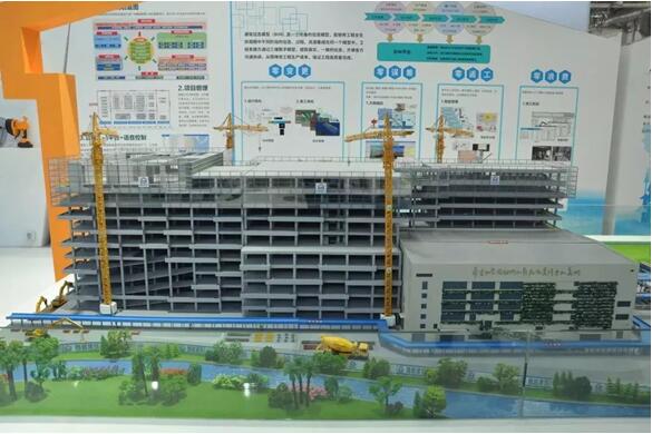 展會現(xiàn)場,廣東騰越以碧桂園總部三期項目為模型,通過1:75的比例還原至沙盤,重點展示廣東騰越 “鋁模+免拆模技術(shù)”、項目自行研發(fā)“一柱一樁”調(diào)垂工法、逆作法、SSGF新建造體系、BIM等新技術(shù),全面還原項目建造全過程。