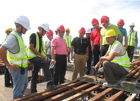 12月22日,公司總經(jīng)理馬小軍總率檢查組一行深入馬來(lái)西亞分公司金海灣項(xiàng)目施工現(xiàn)場(chǎng)檢查指導(dǎo)工作時(shí),發(fā)現(xiàn)該項(xiàng)目采用鋁合金模板和用方鋼替代木枋作橫撐龍骨,當(dāng)場(chǎng)表現(xiàn)出濃厚興趣,并進(jìn)行了深入調(diào)研。
