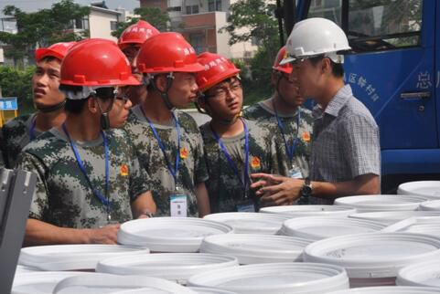 現(xiàn)場(chǎng)管理人員向?qū)W子們現(xiàn)場(chǎng)管理經(jīng)驗(yàn)